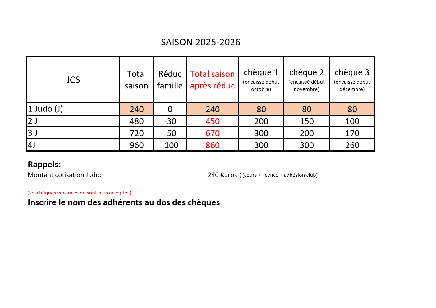 Elle comprend les cours et l'adhésion au club (assurances, licence, fonctionnement).